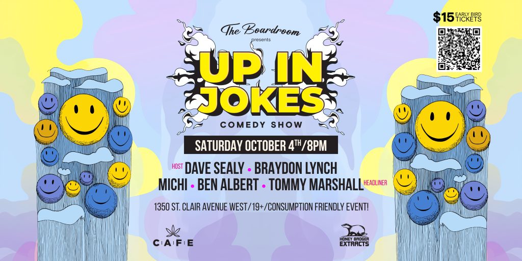 Shows are located at The Boardroom Comedy Club at 1350 St Clair Ave West