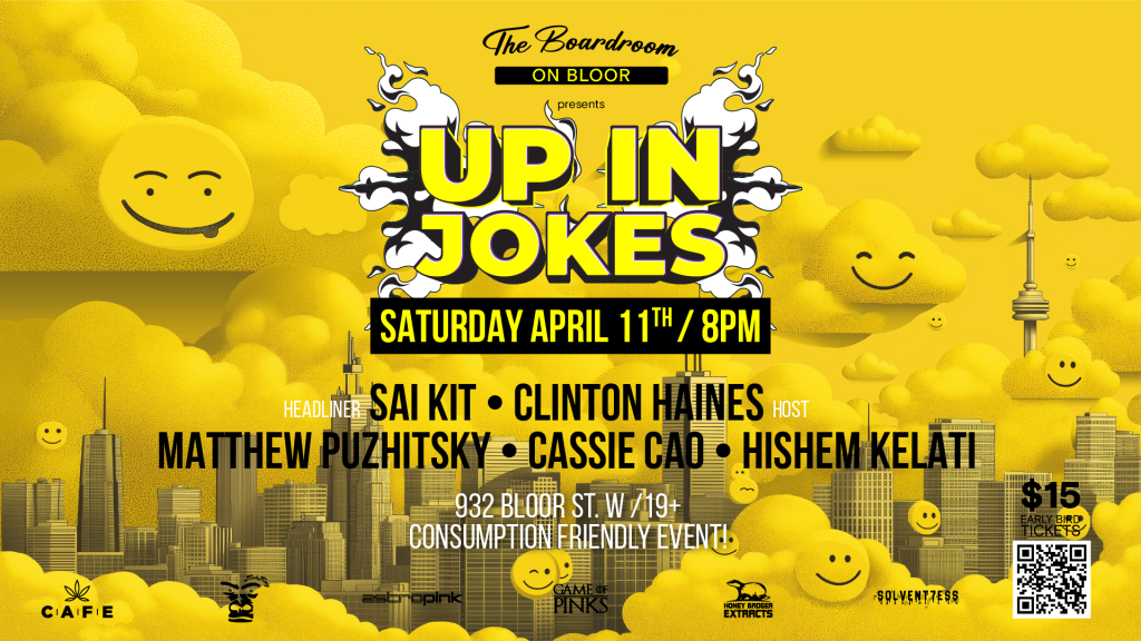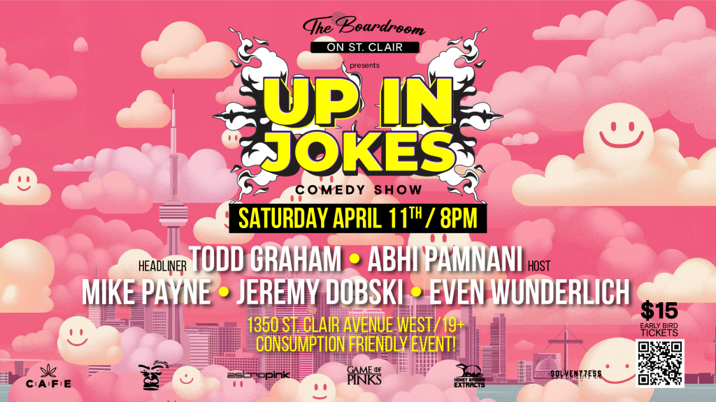 Shows are located at The Boardroom Comedy Club at 1350 St Clair Ave West and 932 Bloor St West